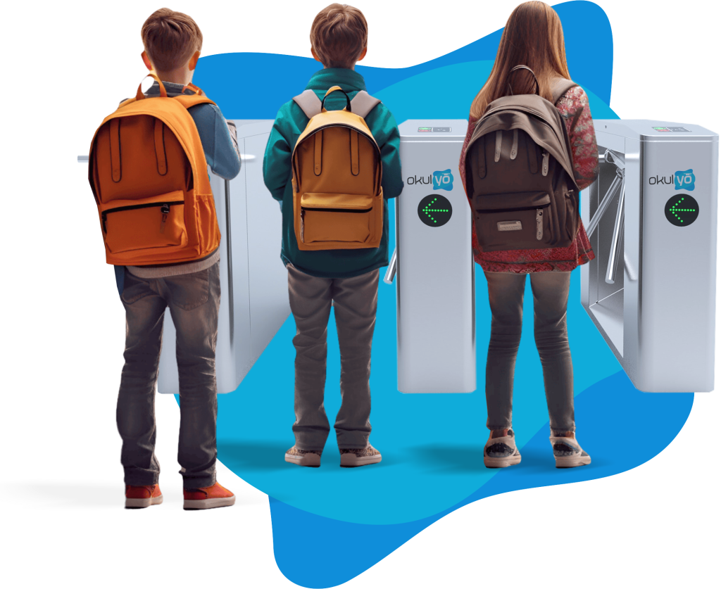 Okulyo turnike ve kartlı geçiş sistemi ile daha güvenli bir okul ortamı yaratın. Öğrenci devamsızlıklarını anlık ve otomatik olarak tek tıkla takip edin. Öğrenci devamsızlıklarını E-Okul sistemine kolayca aktarın. Okula geç gelen ya da gelmeyen öğrenci velisine otomatik bildirin ve SMS gönderin.